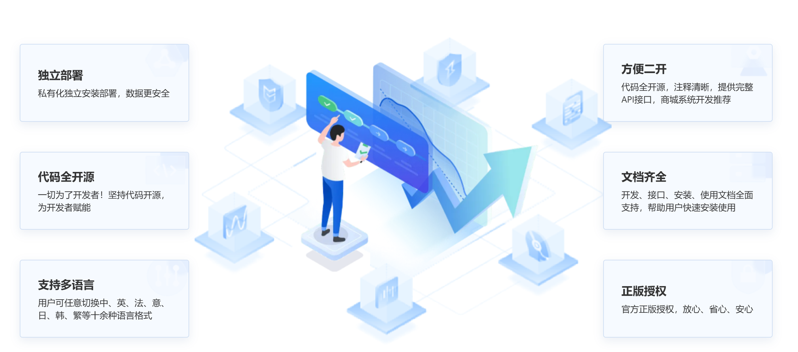 帮助中小型企业快速实现线上电商系统搭建,以社交电商为核心,借助系统完善的营销体系、分销体系拓展线上销售业务。